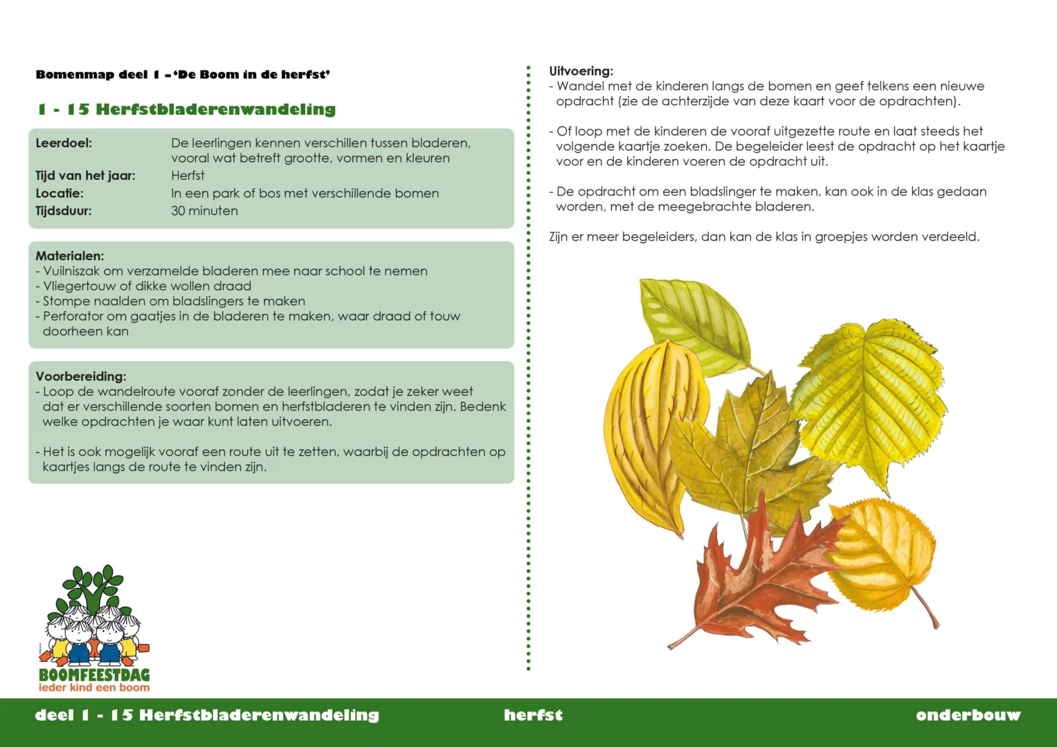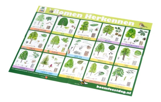 Naast het leren herkennen van de twintig in Nederland meest voorkomende bomen aan de hand van blad, schors, vrucht, knop en bloei, worden in de Bomenmap diverse andere onderwerpen belicht. Zo ontdekken de leerlingen met LEGO-steentjes hoe een boom zuurstof maakt van CO2, zonlicht en water. Ook denken de kinderen actief na over bomenkap en het herplanten van bomen, wat bomen doen voor je gezondheid, het klimaat en biodiversiteit. Ze maken kennis met speel- en voedselbossen, groene beroepen, (houten) producten van bomen en met bomen in kunst en cultuur. Bekijk hier de preview van de Bomenmap! en hier de lovende recensie door het NIBI (Nederlands Instituut voor Biologie).